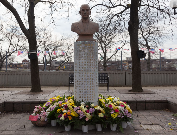 仪式结束后,孙中山的铜像被五彩的鲜花簇拥着。