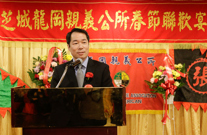 中国驻芝加哥总领馆洪磊总领事在致辞中表示,很高兴与龙冈亲义公所聚在一起,共同庆祝中华民族的传统节日。洪磊总领事肯定了龙冈亲义公所在团结侨团,服务侨社方面所作出的贡献。洪磊还指出,龙冈亲义公所的成员们十分关系祖国建设,一直与祖国同发展,共命运,为中美关系的发展身体力行。洪磊总领事最后表示要继续与龙冈亲义公所一道,为中美关系更好的发展共同努力。