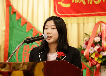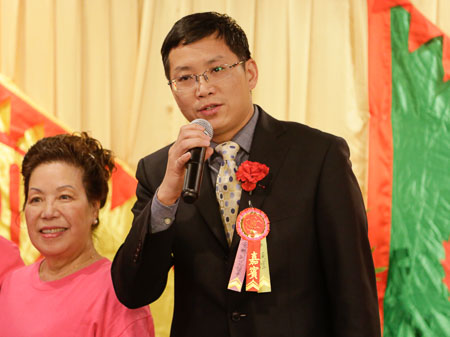 春宴在龙冈公所全体职员整齐,高昂的《龙冈歌》中拉开了大幕。龙冈亲义公所主席张杰雄代表龙冈公所全体职员向来宾致欢迎辞。他首先代表龙冈亲义的全体同仁向来宾送去了新春的祝福,祝福大家在新的一年美满,幸福,吉祥如意。接下来,张杰雄主席着重介绍了以“团结,服务”为核心的龙冈精神。他指出,龙冈亲义公所传承了三国时期刘、关、张、赵“忠义仁勇”,“精诚团结”,精神与作风,将这样的精神结合实际情况,在美国发扬光大。他表示,龙冈亲义公所的宗旨就是团结当地侨团,共同服务侨社,为侨社的安定,繁荣,和谐作出应有的贡献。张杰雄主席希望可以将这样的“精诚团结”精神不断传播下去,希望早日实现祖国两岸的和平统一与中华民族伟大复兴的中国梦。