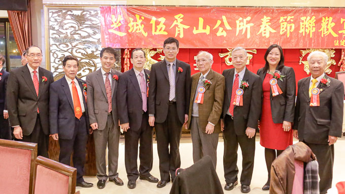 中国驻芝加哥总领事馆副总领事余鹏、侨务组长卢晓辉;驻芝加哥台北经济文化办事处副处长陈琼玉,侨教中心主王伟赞,伊州众议员马静仪,以及芝加哥广州协会会长史卫明,安良、洪门、协胜等各界侨 团代表,与黄伍两姓宗亲、各界来宾400多人欢聚一堂。