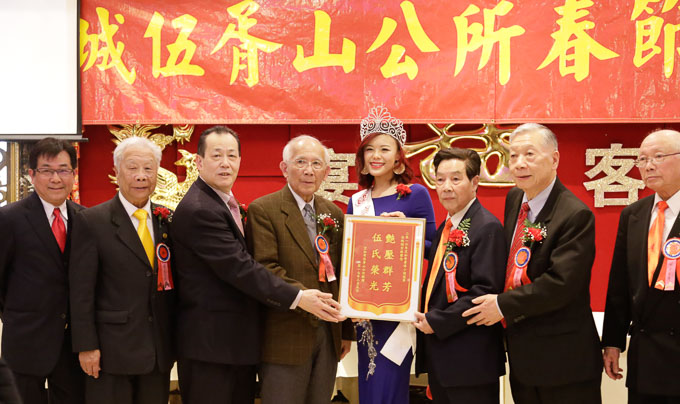 伍胥山公所主席及元老为2016华埠小姐伍佩俐颁发表彰奖状
