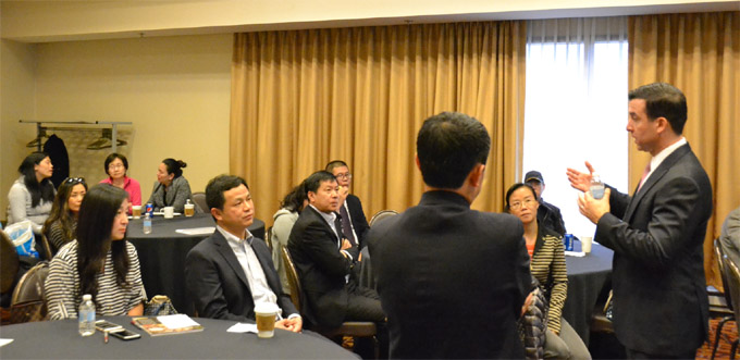 【芝加哥侨学网报道】由移民超市公司主办的“芝加哥-瑞柏市万豪酒店股权投资”首场说明会,日前在西郊瑞柏市万濠酒店(Marriott Naperville Hotel)举行。来自大芝加哥及中国大陆的40多位华裔来宾参加当日的活动,对该酒店的股权投资表现出浓厚的兴趣,并提出众多专业的问题。