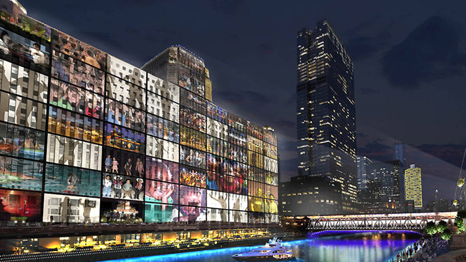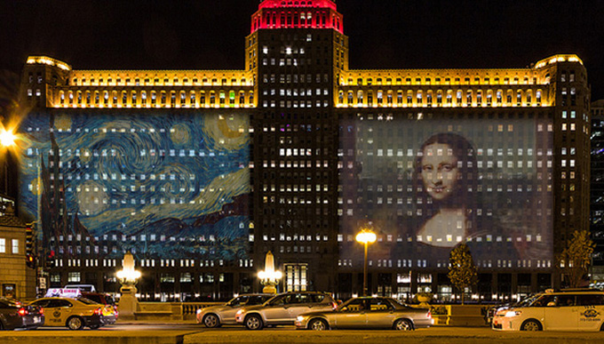 【芝加哥侨学网编译】芝加哥市提出已久的”芝城光亮计划“计划((LFP))将在2018年全面开启。市政府日前宣布,计划在明年率先点亮位于芝加哥河畔的标志建筑Merchandise Mart。届时Merchandise Mart 3英亩之大的建筑表面将被投影技术投上绚丽多彩的画面,成为一幅巨大的艺术画布,映照着波光粼粼的芝加哥河,将呈现出梦幻绚丽的湖畔景观,成为城市一道亮丽的风景线。