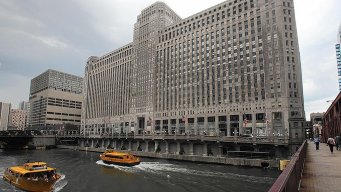 据悉,Merchandise Mart有25层之高,宽度横跨2个街区,在1930年投入使用时为当时世界上楼体面积最大的建筑。由于面积巨大,该大楼曾一度独占一个邮编(60654),直到2008年邮局将其与附近区域的建筑编入了一个邮编。