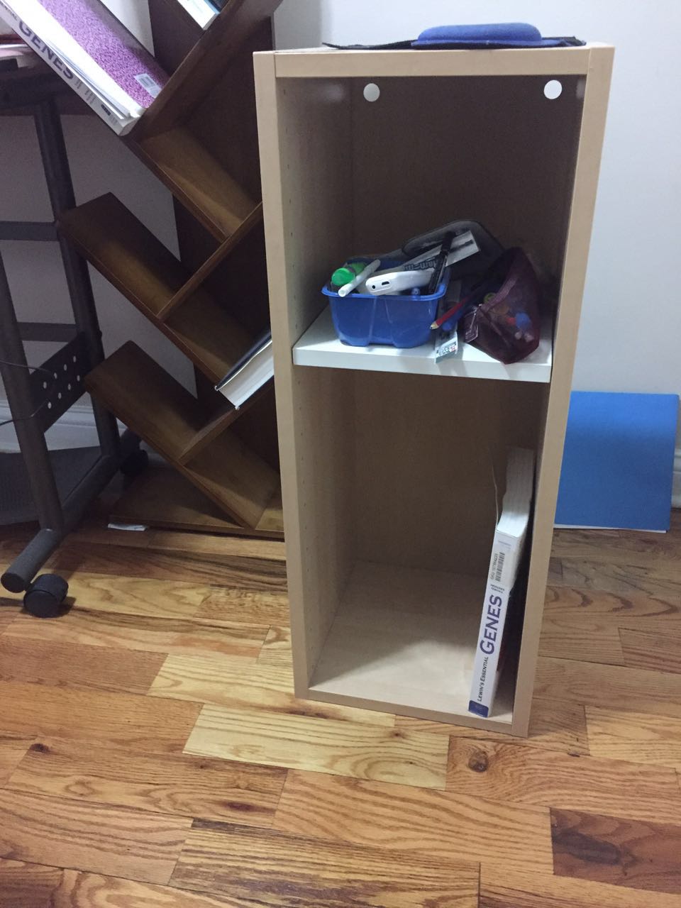 高矮和书桌,床差不多。可以用来放书,练习纸,文件,也可做床头桌。13刀送学校附近楼下,8刀学校里自取。联系:3123072149 短信最好