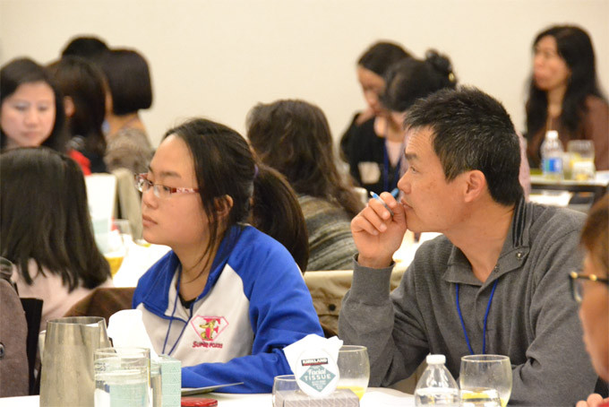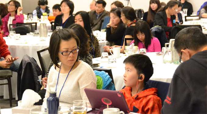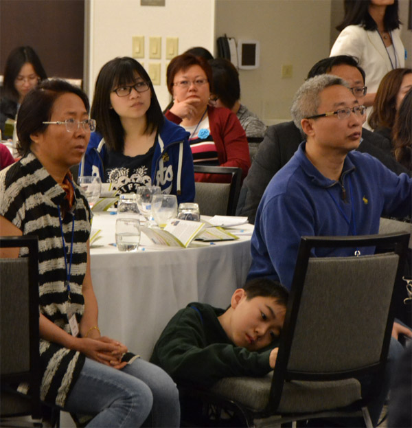 当天有不少华裔家长都带着孩子们参加,更有一家三代同堂倾听,对于英文不熟悉的参会者,主办方还配备同声传译,及时翻译嘉宾的演讲内容。如何应对校园欺凌?如何与华裔子女有效沟通?如何评价孩子是否有出息?在当天的听众提问,以及分会研讨中,大家讨论热烈,众多华裔家长心底的共鸣,化作全场的热烈掌声。