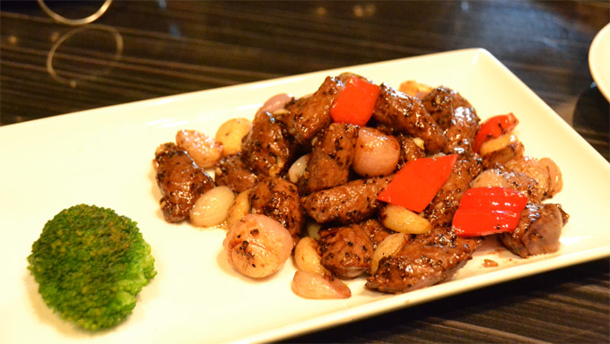 菲力牛仔粒,上等牛肉,小干葱,十几种调料,先煎后炒, 貌似简单的食材,牛肉粒宛如豆腐一样的鲜嫩口感,这对火候和厨艺的要求是至高的,只有经验丰富的厨师可以做到。