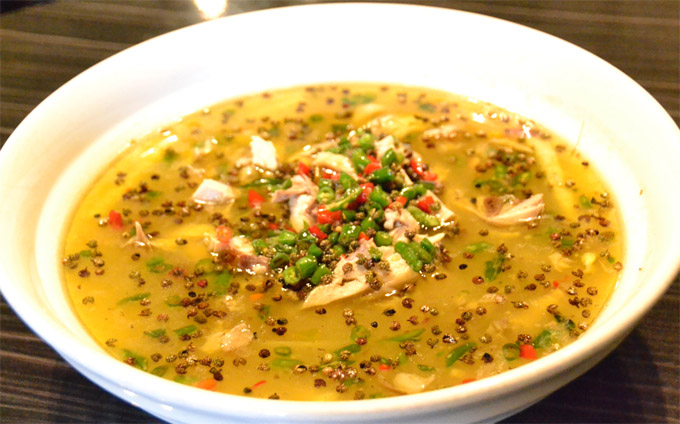 巴国天府自制的四川泡菜、秘制泡椒、泡姜,是这道山椒酸汤肥牛的佐味关键。对于辣度挑战有限的朋友,这款酸辣调和的新菜是再好不过的选择。