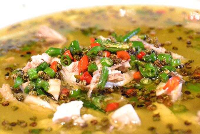 藤椒走地鸡,这是大厨美食艺术的神来之作。农场走地鸡,新鲜鸡肉的肉质口感,在鲜椒汤汁之中清晰可辨,这不同于超市冰柜上的廉价鸡肉。豆芽、小竹笋,从四川空过来的青花椒,让这道菜入口鲜嫩,而后是就是持久丰厚的麻辣,这是从早春新绿点点到五月繁花似锦的变换。