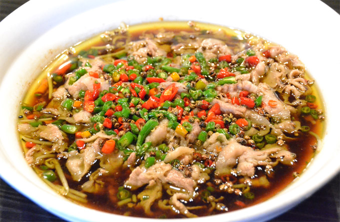 巴国天府的采购总管,精选对比了市场上十几种上等牛肉,最后确定了半肥半廋为最佳,口感不柴又不肥腻。十几种川菜调料,溶于巴国天府秘制的营养健康蔬菜汁,肥牛浸透滋味,咬一口,有弹性。以四川藤椒味为主打的鲜椒肥牛,舌尖上的麻辣冲撞,叫过瘾,是享受。