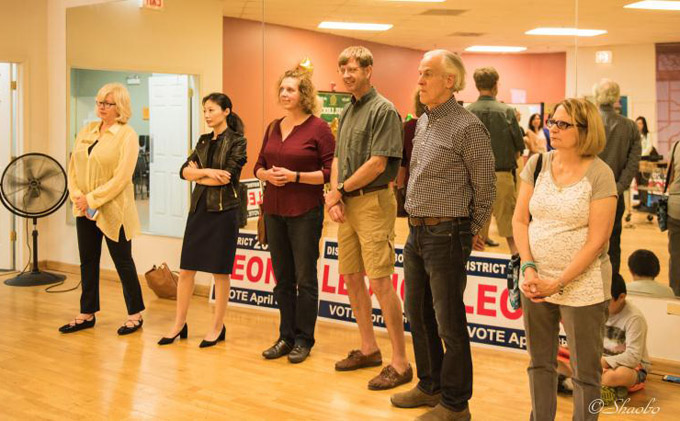 希林中心杨八林则回顾过去一年多来从华人维权到参与校区竞选的历程,感叹这样一个质的飞跃,希望大家再接再厉。刘研作为外学区的第一个支持者和大家分享了她对学区的建设热情和心声。Stanley Zhou作为我们第一次竞选募捐的发起人也上台表达了华人权益要从校区社区等小处着眼的理念。保罗的竞选合作伙伴,前瑞柏市市政厅官员Bob Fieseler也对保罗表示了祝贺和祝福。保罗最后做了本次竞选的总结陈词。