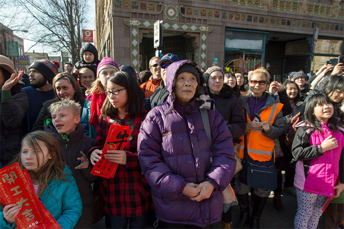 摄于2017年,围观中国城春节游行的人群