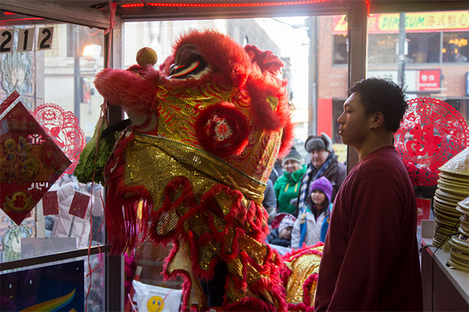 摄于2017年,一家中国城饭店的醒狮庆典,祈福新年好运
