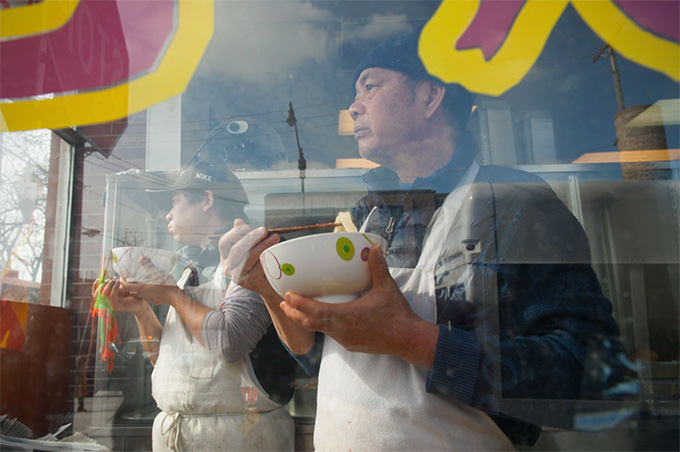杨子豪是土生土长的美籍华人,他出生在密西根州的弗林特市(Flint)。父母在1981偕姐姐全家从中国香港移民到美国,据他讲,小的时候弗林特市的华人社区很小,自己也并没有感受到来自华人社区太大的文化影响,从小到大都是接受地地道道的美国文化教育。杨子豪告诉记者,很长的一段时间里完全没有认识到自己是一位美籍华人(Chinese American),从小也没有特别学习过中文,认为自己就是一个美国人。然而这一切的身份认同在他2009年来到芝加哥后被打破了。杨子豪2009年来到芝加哥,作为一名摄影系的学生就读了哥伦比亚艺术学院(Columbia College Chicago)。充满活力,中国文化十足的芝加哥中国城让杨子豪获得了强烈的文化冲击和对自己身份的重新认识。他对作为华人身份的不断认同和对母国文化的强烈兴趣使他拿起相机用自己独特的视角开始探索中国城。他表示,开始拍摄中国城的过程就是自己对中国文化学习以及找寻对母国乡愁的过程。他拍摄了中国城的饭店,中国城的生活方式,春节游行和娱乐活动,这一切对他来说既陌生又熟悉。杨子豪说,一切的影像仿佛源于我华人的血液之中,不断提醒自己华人的身份。唐人街的影像是杨子豪找寻乡愁的一叶舟。
