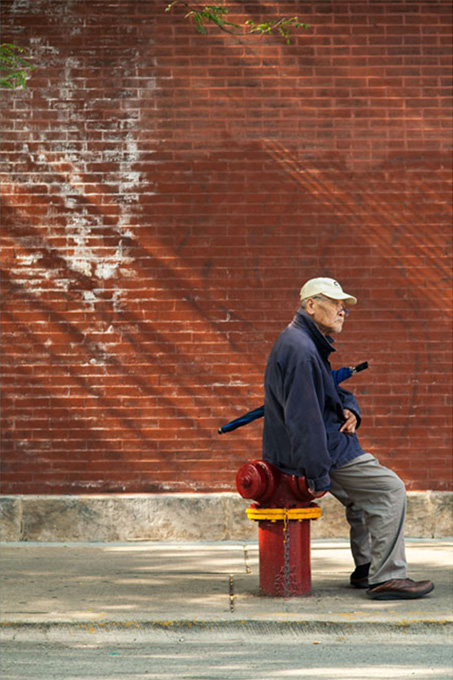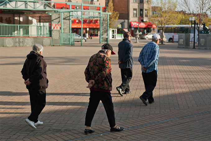 摄于2013年,在华埠广场散步的老人