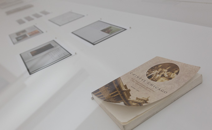 杨子豪除了在“画廊”展厅展示了他的摄影作品成品外,还分别在“工作室”展厅与“实验室”展厅展示了大量他在学习和研究拍摄对象和主题时的工作过程与参考资料,向人们展示了他如何一步步通过构思主题,调研中国城,阅读芝加哥华人移民历史到实地创作与拍摄的全过程。