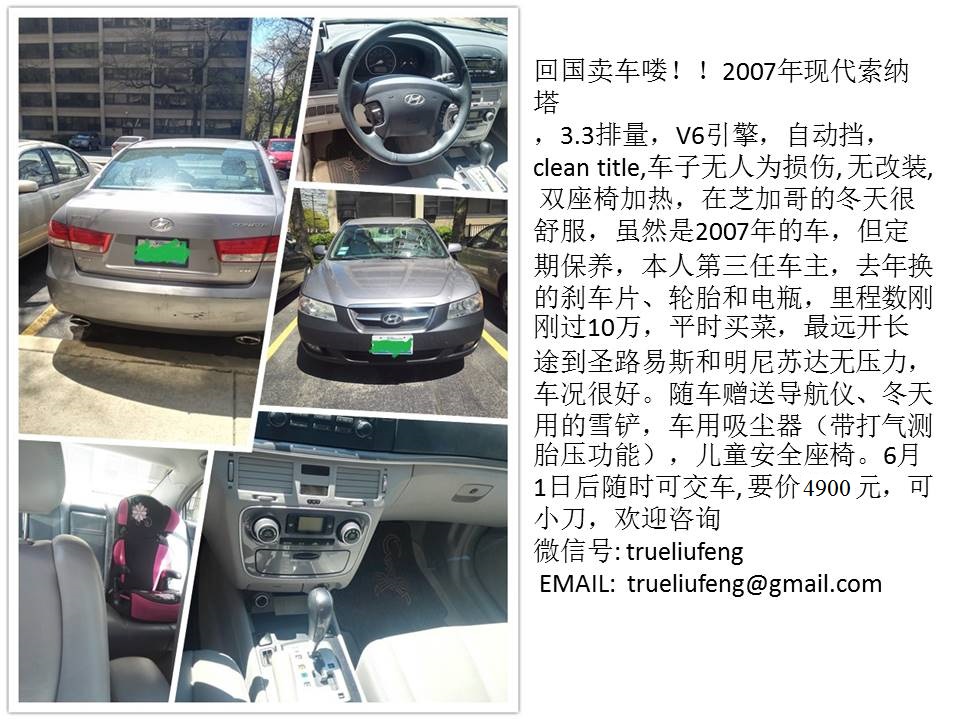 2007年现代索纳塔,3.3排量,V6引擎,自动挡,clean title,车子无人为损伤, 无改装,