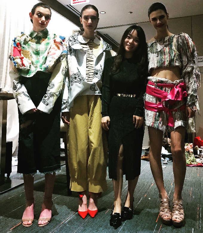 Shaly Guo与模特在后台合影