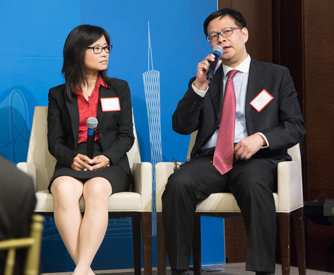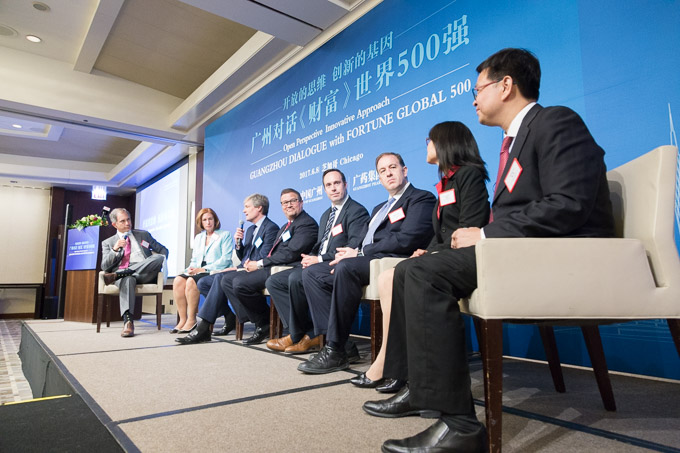 在推介会的最后阶段还举行了题为《开放的思维 创新的基因》的嘉宾对话,来自广州医药集团有限公司的总经理助理黎洪与来自沃尔格林,波音,宜瑞安等多家总部设在芝加哥的跨国公司高管进行了对话,针对如何建立全球化贸易中心,未来医药医疗产业等话题进行了讨论。