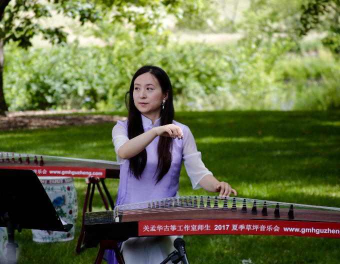 (芝加哥侨学网记者 王一 报道)近日,关孟华古筝工作室师生2017夏季草坪音乐会在DuPage River Park 成功举行。本次古筝音乐会是由关孟华老师及其她的学生们共同演绎古筝的瑟瑟之音,同时还请到了几位嘉宾为本次音乐会助兴,来自东方艺术团的徐荃,华人艺术团的王一,芝加哥文化村的郭进。