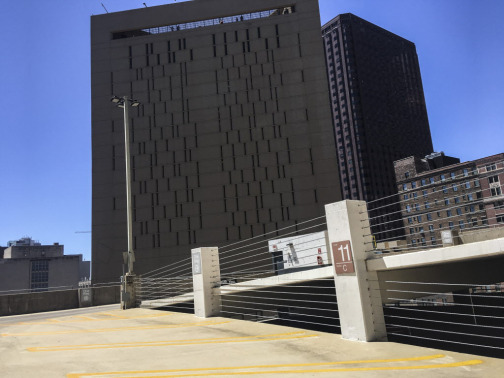 This is where Briana Fitzgibbons saw nude dancing and sex acts take place — on the top floor of a self-park garage across from the Metropolitan Correctional Center. | Rich Hein / Sun-Times