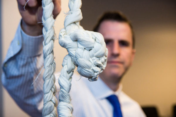 FBI spokesman Garrett Croon displays one of the ropes that Joseph “Jose” Banks and Kenneth Conley used in the escape from the Metropolitan Correctional Center. | James Foster / Sun-Times files