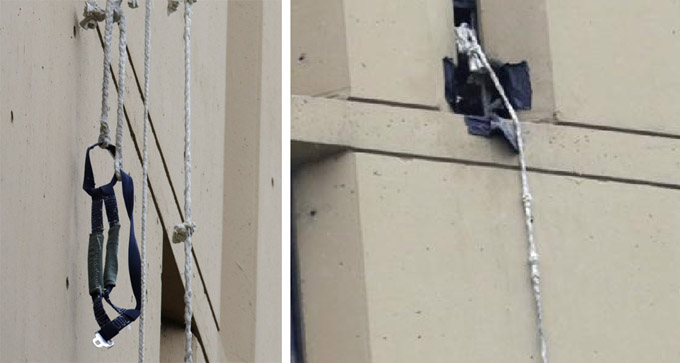 联邦探员展示越狱犯用床单编制的绳子
