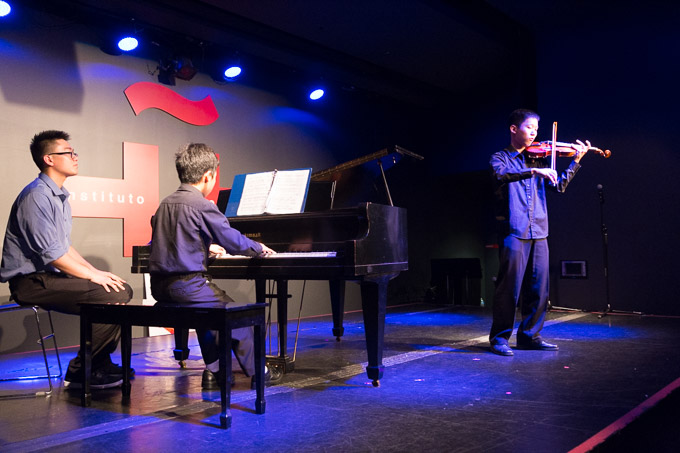 闭幕式汇报演出由中国经典曲目《梁祝》来开帷幕。两位青少年艺术家Zhanhao He与Gang Chen分别用小提琴与钢琴深情演奏曲目,钢琴搭配小提琴,两位青少年艺术家相得益彰,将中国经典曲目《梁祝》赋予了独特的韵味。