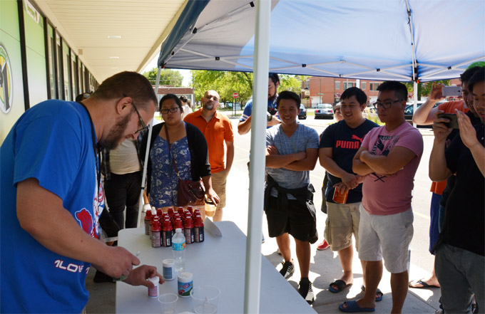 当天的比赛,从上午11时开始至下午3时落幕,期间主办方为参与者们准备食品饮料,还有鱼食、鱼缸装饰等诸多奖品。在裁判们认真评分的同时,参赛饲主们交流饲养心得,交流联谊,气氛热闹。金鱼街店内门类繁多的鱼食、鱼缸及配件用品,还有各种淡水、咸水观赏鱼,也吸引大家驻足品评。参赛的21尾花罗汉,更是成为大家关注的焦点。这些大小不一,色彩斑斓的参赛选手们,在鱼缸中悠闲畅游,雍容华贵。