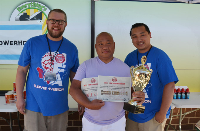 本届大赛的总冠军,是一尾来自泰国的红斑花罗汉,饲主为来自威斯康辛Appleton的泰国裔居民Cheu Yue。据冠军饲主介绍,他一个多月前才从泰国带回这尾冠军花罗汉,没想到居然一举夺冠。Cheu Yue表示,当时他曾带了三条花罗汉回到美国,但不幸的两条都已经死亡,仅存的这条能在比赛上夺冠,让他感到很欣慰。华罗汉的饲养特别有讲究,参加本次比赛,让他与众多经验丰富的饲主们交流经验,收益良多。