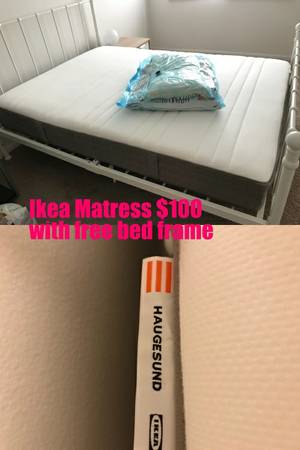 1. Full size Ikea Haugesund spring mattress  ($100). The mattress comes with bed frame for free.