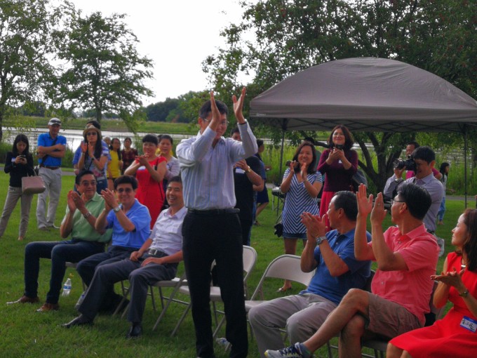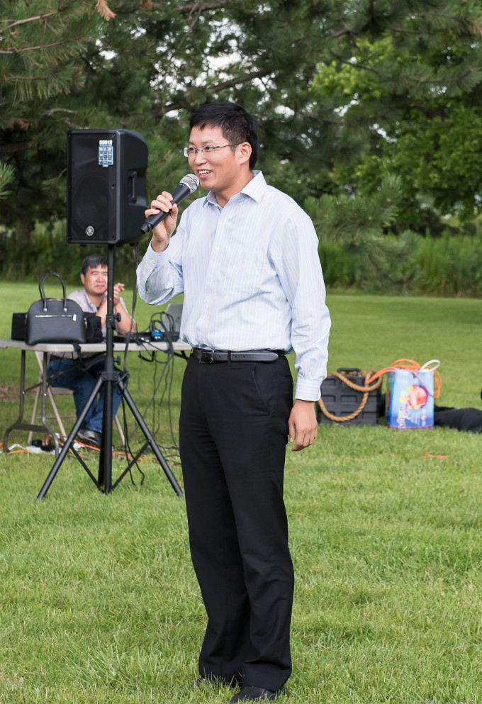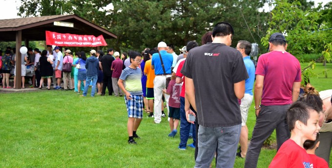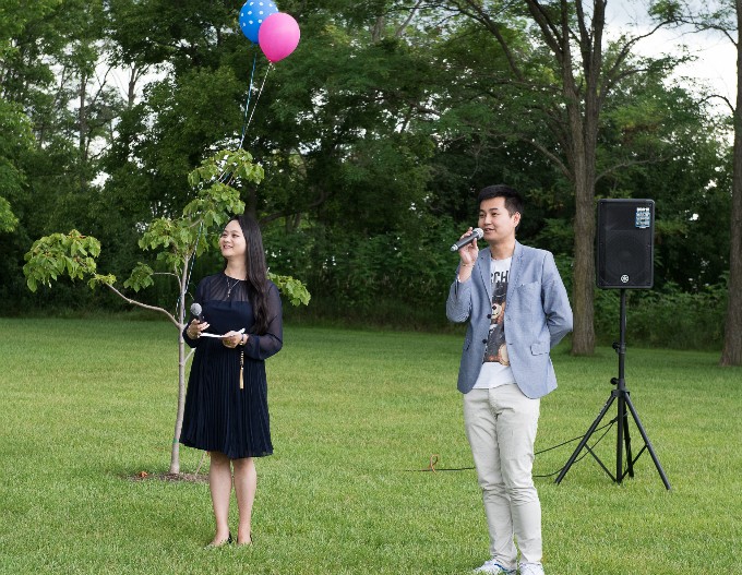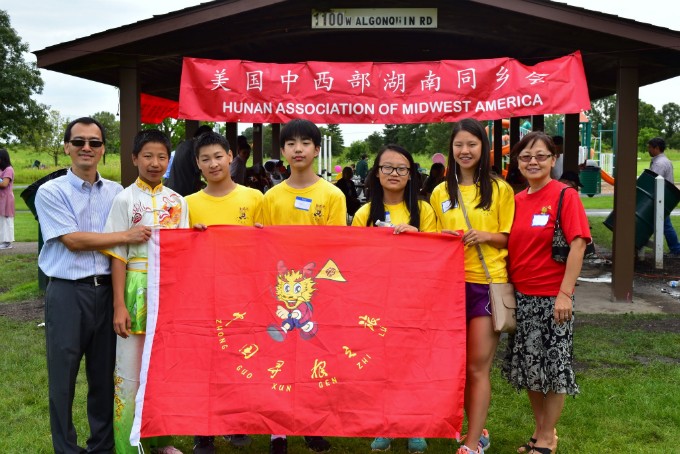 当天的聚会由美中湖南同乡会理事会成员陈潇和Jennifer Liu主持。陈潇模仿毛主席那段台词让大家捧腹大笑:“芝加哥的老乡们万岁!现在我宣布美国中西部湖南同乡会野餐现在开始!”