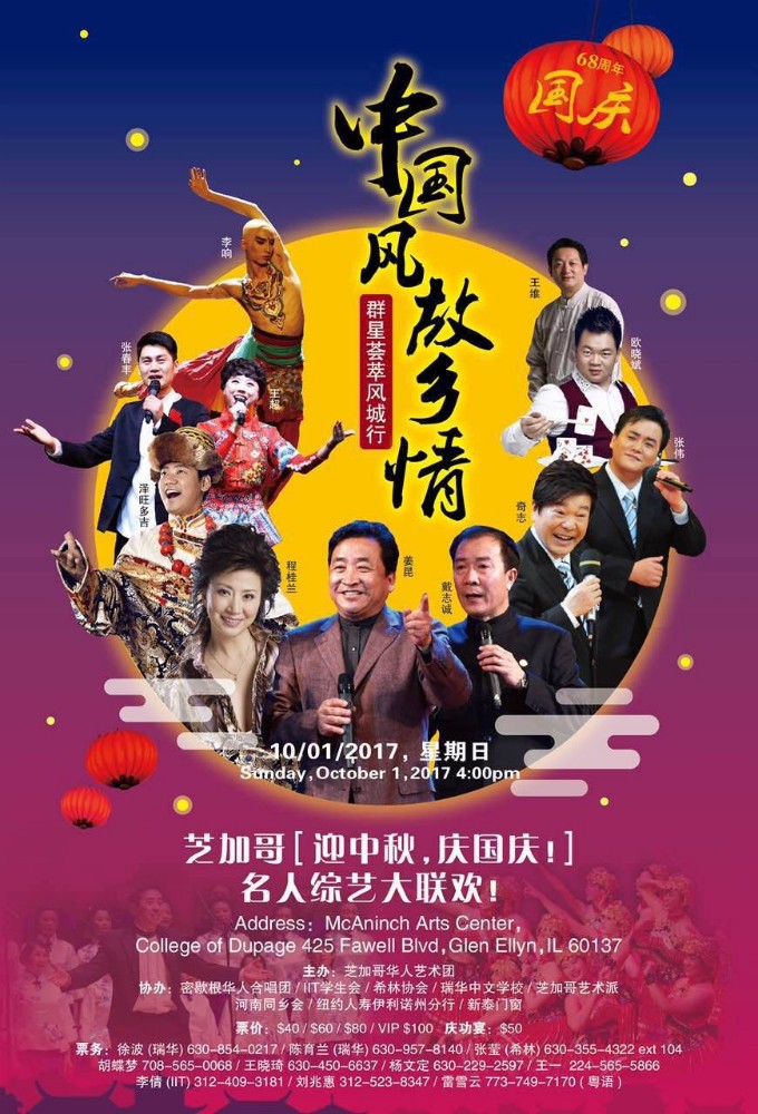 “十一”芝加哥“庆国庆,迎中秋!”名人综艺大联欢!