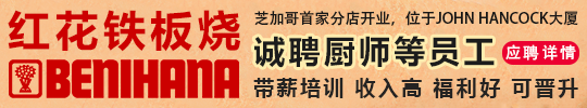 .jpg) 红花铁板烧(Benihana)芝加哥市首家分店,已在市中心John Hancock大厦开业。