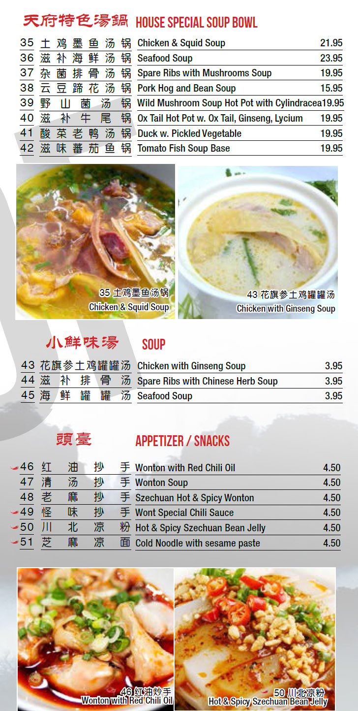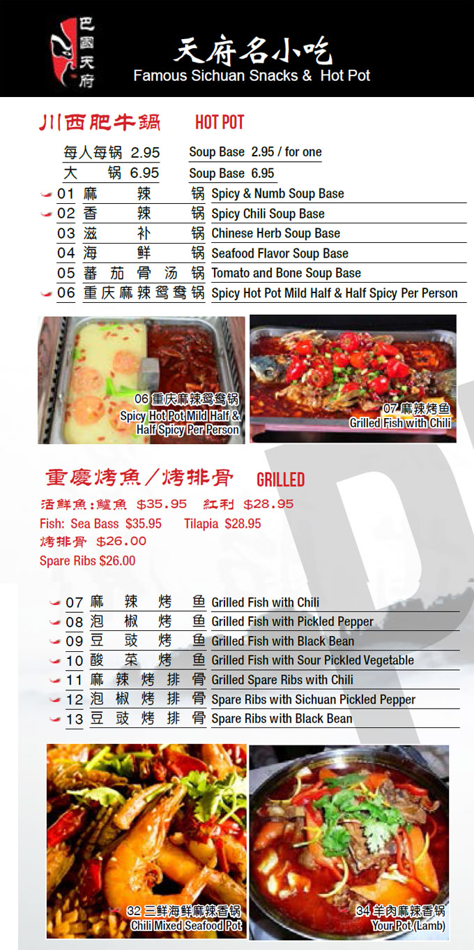 天府名小吃,位于巴国天府对面,提供川西肥牛锅系列,各类四川风味面食,天府特色汤锅,麻辣烫,麻辣香锅,滋补土鸡汤锅。吃在中国,味在四川,四川各地风味美食,竞选荟萃,尽在天府名小吃。天府名小吃将火遍全中国的四川风味美食、小吃带到风城芝加哥,与巴国天府的川菜大餐遥相呼应,相得益彰。