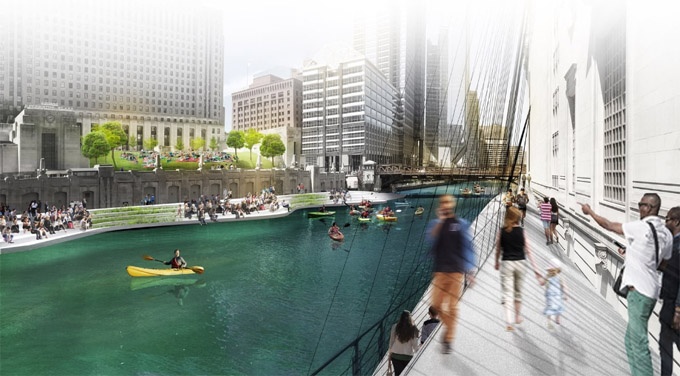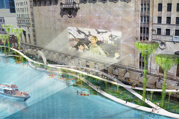 这些芝加哥河畔走廊的未来建筑设计创意,除了将在芝加哥各社区展出外,还公布在The River Edge Ideas Lab网站(