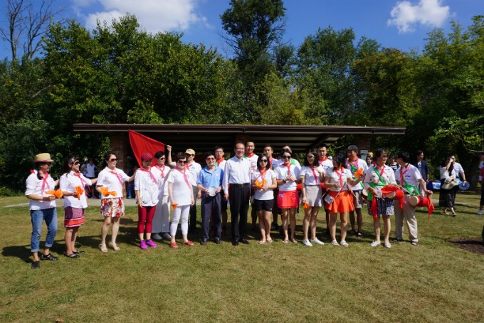 【芝加哥侨学网记者 王一 报道】9月24日,美国中部地区江苏同乡会、美国中部地区江西同乡会、东南大学校友会(原南京工学院)以及南昌大学校友会在芝加哥北郊风景优美的Big Bend Lake Grove (Des Plaines)森林公园隆重举行。中国驻芝加哥洪磊总领事,柳青领事,王芸领事,大芝加哥地区华人华侨联合会汪兴无主席等出席了本次野餐联谊会。