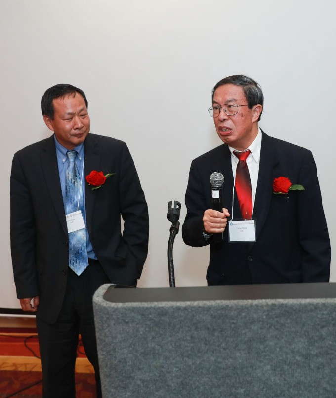 芝加哥地区华侨华人联合会理事长、科工专前会长栾文琦先生与科工专创始人之一和首届会长熊天渝博士在科工专成立25周年之际也向协会致辞祝贺,寄语科工专未来要凝聚二十五年积累的丰富社会和人才资源,团结,奋斗,和创新,继续谱写科工专“合作、发展、贡献”的新篇章。