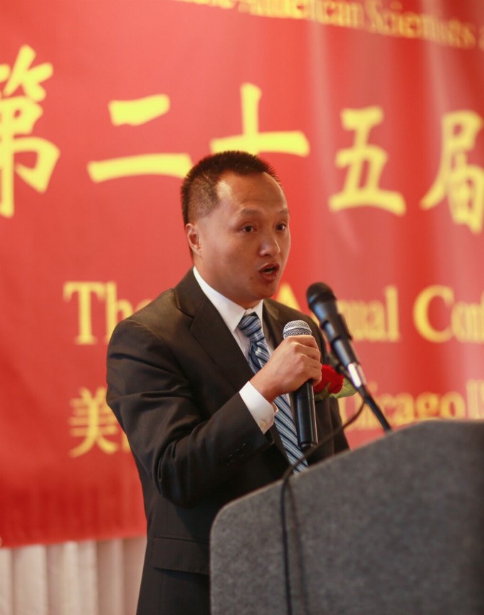 中国驻芝加哥总领事洪磊致辞,恭喜科工专协会成立25周年,科工专在服务和凝聚大芝加哥地区广大华人科学家及专业人士为搭建平台所做的重要工作。在目前世界专利记录不断突破和AI人工智能创新的形势下,科工专此次年会将围绕智能革命的挑战与机遇开展学术交流,进一步探讨中美在前沿科技领域的合作空间。洪总领事寄语科工专在未来能继续扮演促进中美专业交流的重要角色和桥梁。