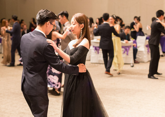 舞会以一曲悠扬的华尔兹双人舞拉开序幕。男女同学们各站一排,准备牵手自己的舞伴。在整场舞会上,主办方安排了多曲不同曲风的舞曲和互动活动,很好地调动了现场的气氛。其中,自由舞、自由社交和交换舞伴等环节更是为现场同学们提供了良好的社交机会。