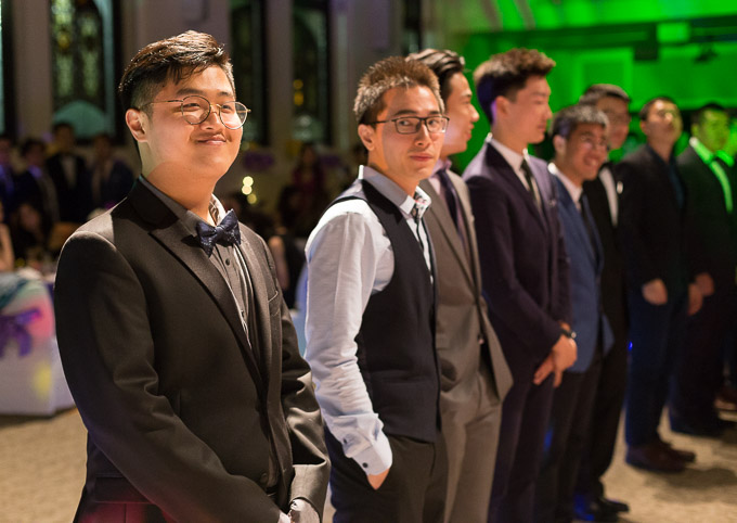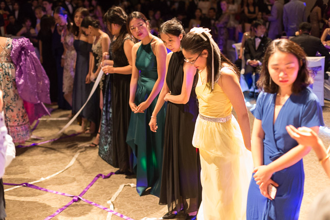 本次舞会的主题为“Debutante Ball” (元媛舞会),因此主办方特意安排了随机搭配舞伴的环节。在该环节,男士女士各站一排,通过随机选择的彩条配对男士女士,选出自己的舞伴。