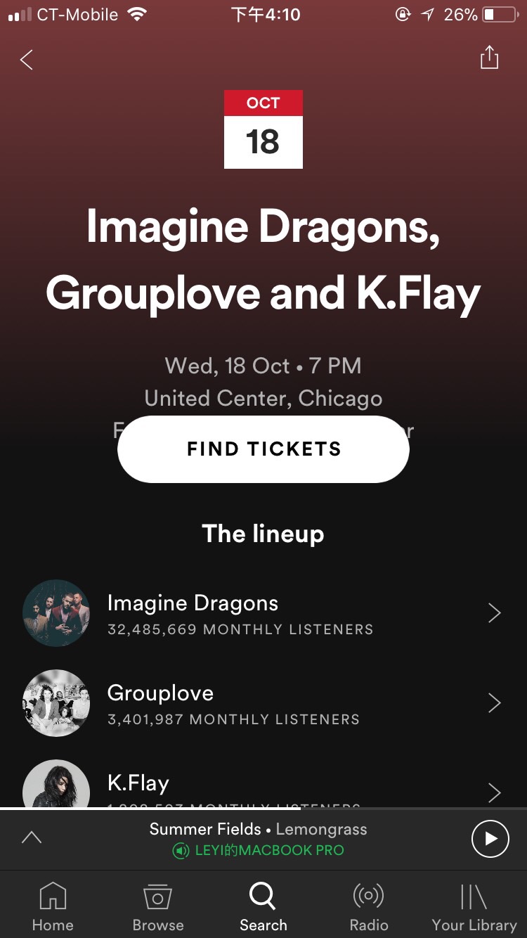 * Imagine Dragons就是唱“Demons”,“Believer”,“Radioactive”的那个著名流行摇滚乐队。Grouplove 和K. Flay 也是在美国很有名气的!如果没怎么听过的话可以就当听听音乐熏陶熏陶感受感受气氛。