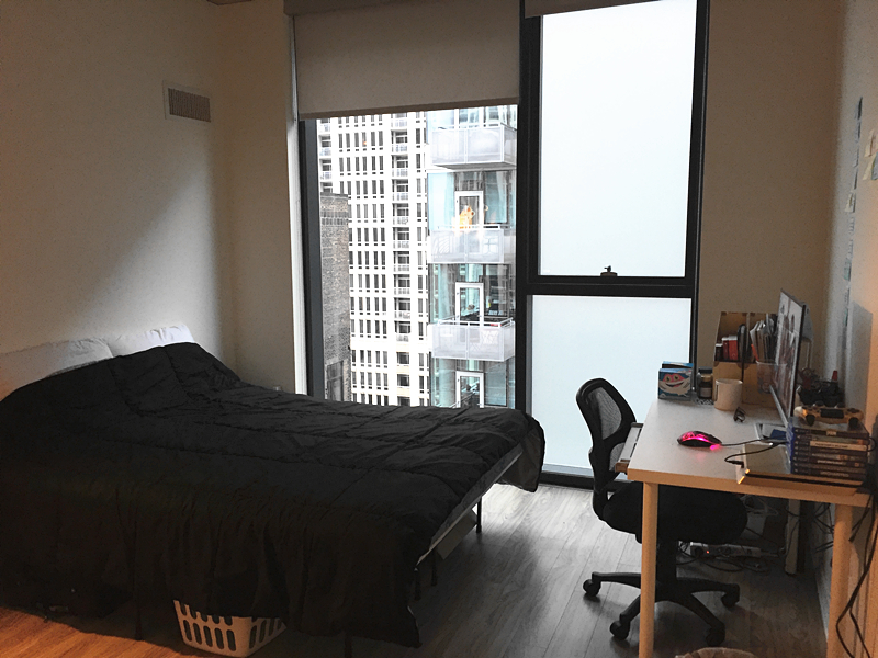 公寓:由于本人下个月回国一段时间,现出租12.1--12.31一个月整。 我住在一个单独的房间,另外有两名中国室友,都是Depaul University的研究生,爱干净好相处。关于房间:洗衣机和烘干机都在房间内,非常方便; 每层楼都有Garbage room;由于是新盖的楼,家里的厨具等都是全新的:明火灶台,洗碗机,Oven等等;公寓里有Parking;Pet friendly,四楼是个遛狗区;有24小时免费健身房;四楼有Party room和烧烤台,可免费使用。