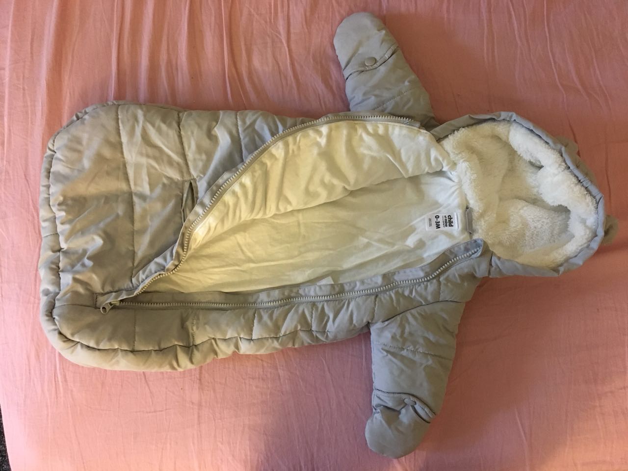 全新婴儿服,宝宝穿上在安全座椅里很暖和(原价$12,未穿过,买车即送)。