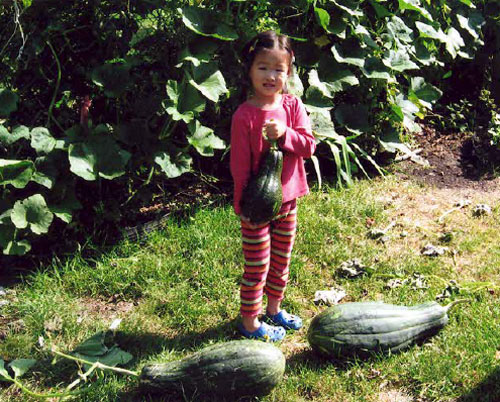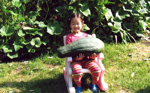 华人在自家后院种菜种瓜,秋冬之际享受丰收的喜悦,所谓吃得健康,玩得开心,为生活增添不少色彩。图为芝加哥一个华人家庭的南瓜喜获丰收,特别请上餐桌摆造型,留下喜悦的心情。