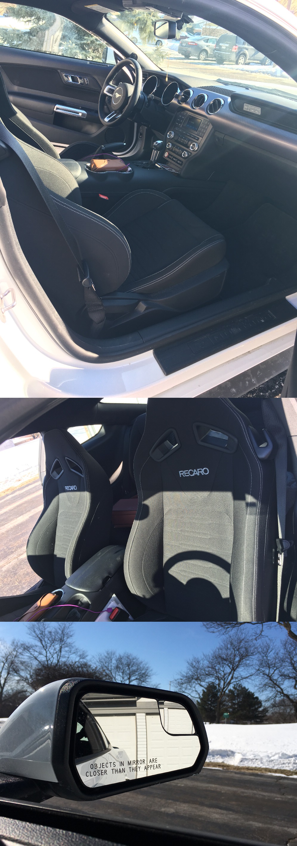 具体参数:435马力5.0升 V8大排量自吸,选装RECARO赛道座椅,3.55传动比LSD,搭配暗夜套件,无框车门,可以说是非常低调耐看又帅气了。底盘高度与普通轿车无异,自带倒车影像,简直好看又好用。亲测大半个冬天,因为美国这边扫雪很勤,所以255/R19 All season 轮胎足够应付芝加哥冬季路面。后期加装ROUSH原厂尾段排气,吼起来蛮凶,但只改了尾段所以并不会很吵,炸街神器。4000mile 首保换机油机滤、轮胎充氮气。