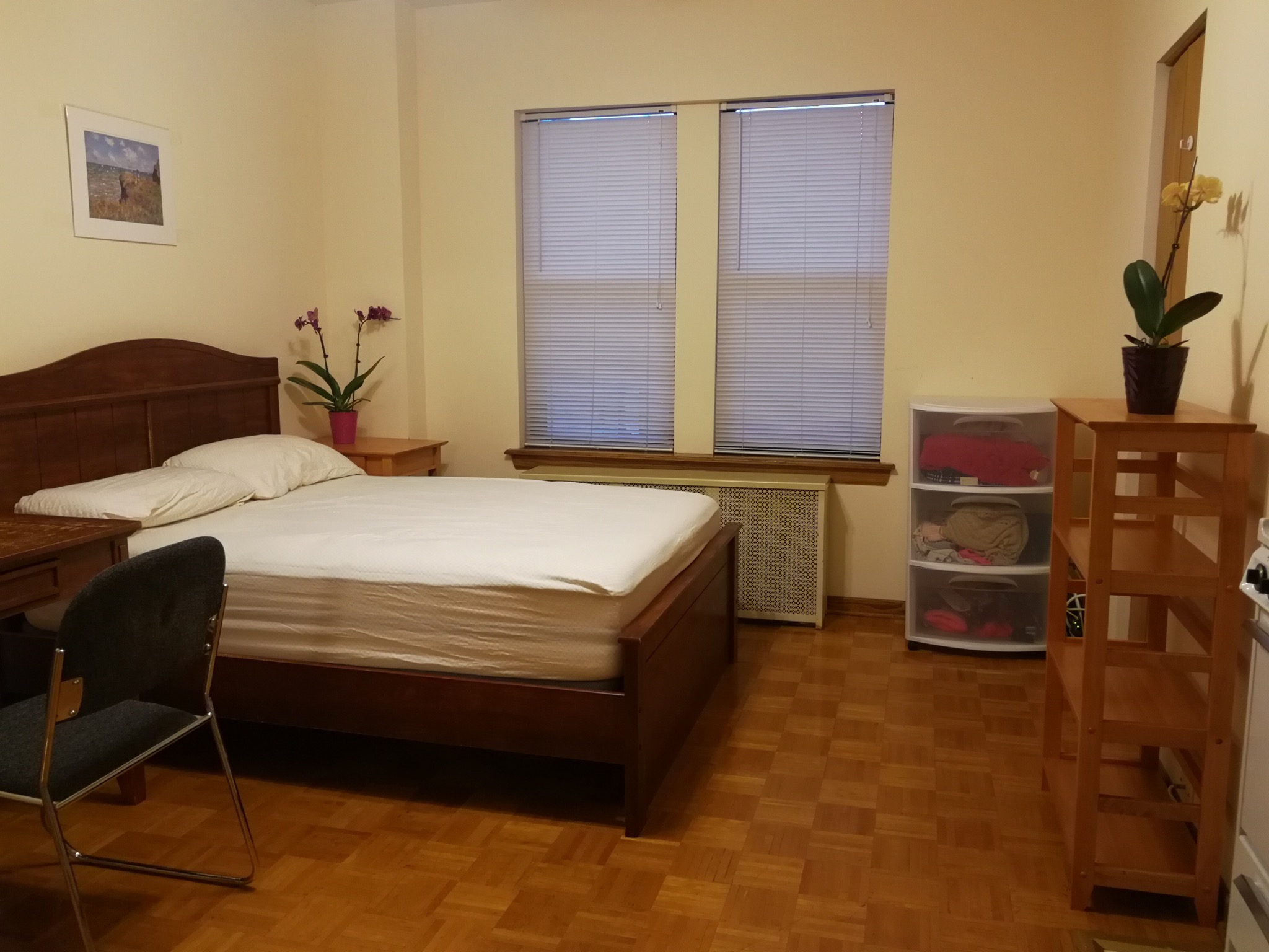 公寓管理完善,设施齐全。Studio 位于七楼,正南朝向,光线极好,阳光明媚,视野宽阔,前面没有遮挡,家具齐全。每月$1015,