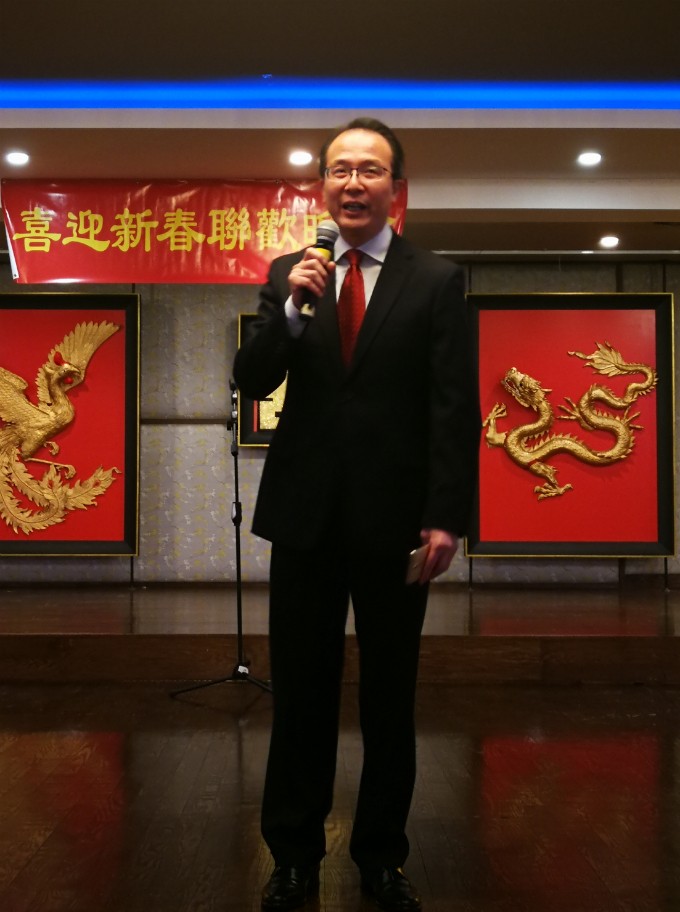 中国驻芝加哥洪磊总领事为今年新春念出了四大汪汪吉祥话:要有数不尽的旺事,忙不完的旺活,交不完的旺友,走不尽的旺途,要一旺无前。很高兴在大年初二和侨领们以及科工专的朋友一起欢度春节。科工专密切的和祖国联系着,为中美之间科学与人才的交流发挥了非常重要的作用。他希望在新的一年里科工专可以继续在中美之间发挥重要作用,并为现场所有人献上了新春的祝福,祝愿科工专不断发展与壮大,中美关系能够迈上新的水平。
