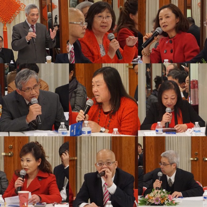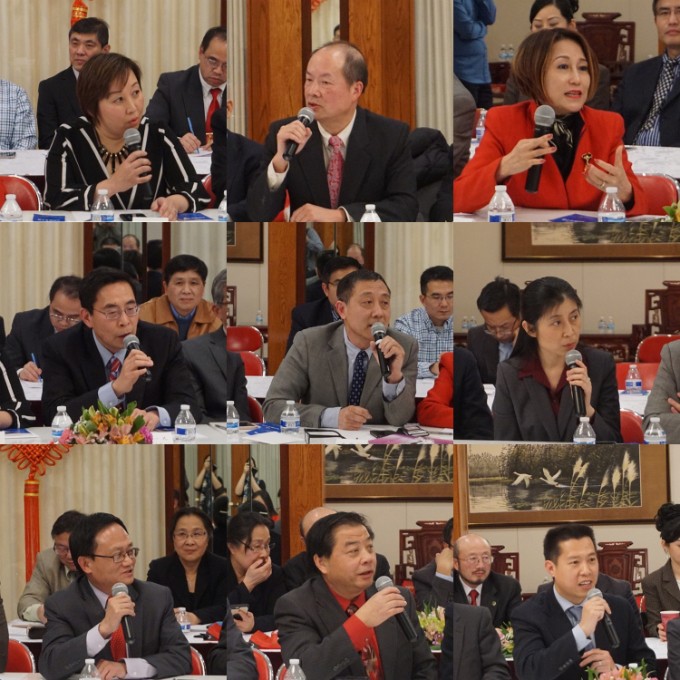 出席本次座谈会并发表讲话的的侨领有大芝加哥地区华侨华人联合会主席汪兴无,芝加哥华人海外交流协会会长赵健航,芝加哥华星艺术团和希林中文学校杨八林,旅美中国科学家工程师专业人士协会(科工专)会长肖小林,东方艺术团团长郑征,芝加哥中餐业代表胡晓军,另外还有来自密歇根州,印第安纳州,威斯康星,密苏里州,堪萨斯州等地的侨领。