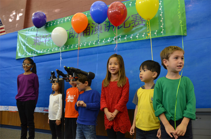 瑞柏市是伊利诺伊州除芝加哥外华裔人口最多的城市。图为瑞柏市瑞华中文学校举办中文演讲比赛